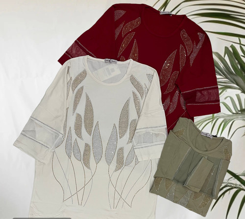 👚 بلوز ویسکوز نگین‌کاری شده با آستین توری